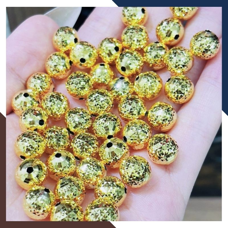 Bi vàng tây 10k là một phụ kiện trang sức phổ biến được sử dụng làm vòng tay. Bi vàng 10k khi phối với các mẫu vòng phong thủy như vòng hạt đá tự nhiên, vòng trầm hương hay vòng ngọc trai không chỉ tô điểm làm tăng tính thẩm mỹ mà còn làm cho chiếc vòng trở nên sang trọng và đẳng cấp hơn, đồng thời tăng thêm giá trị phong thủy. Bi vàng 10k size 8mm và 10mm với lỗ xỏ 2mm - 2.5mm có thể mix với vòng dây đỏ ( vòng dây cáp hoặc vòng chỉ đỏ ) để làm chiếc vòng tay dây đỏ charm vàng xinh xắn hoặc có thể làm mặt dây chuyền vàng.