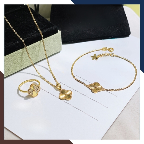 Bộ Trang sức gồm: Dây Chuyền cỏ 4 lá, Lắc tay cỏ 4 lá và nhẫn cỏ 4 lá
