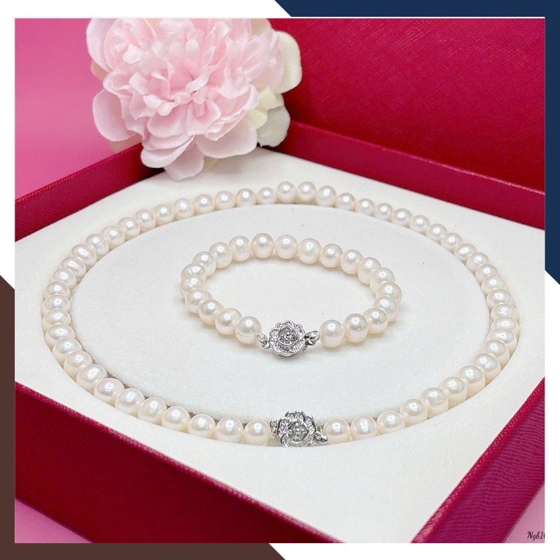 Kiểu dáng: Bộ trang sức ngọc trai cao cấp gồm vòng cổ và vòng tay