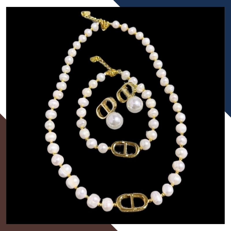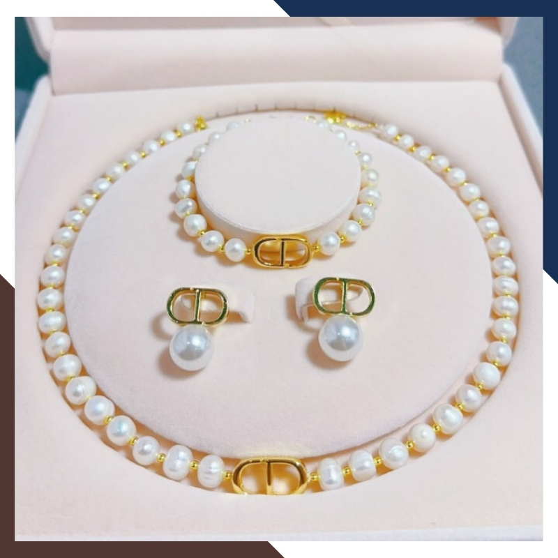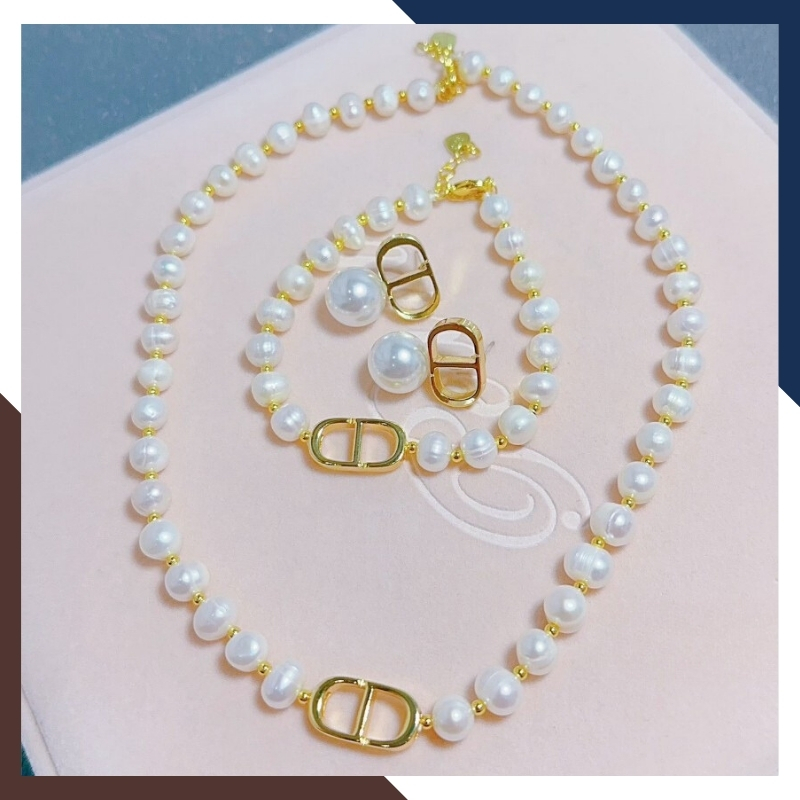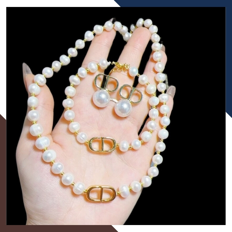 Bộ trang sức ngọc trai CD Dior mặc áo dài đẹp cho nữ mã V78450B910