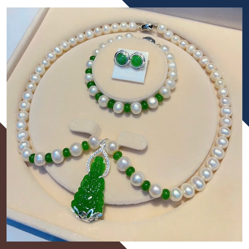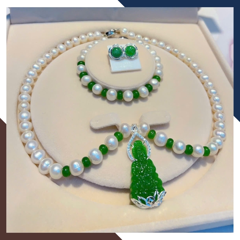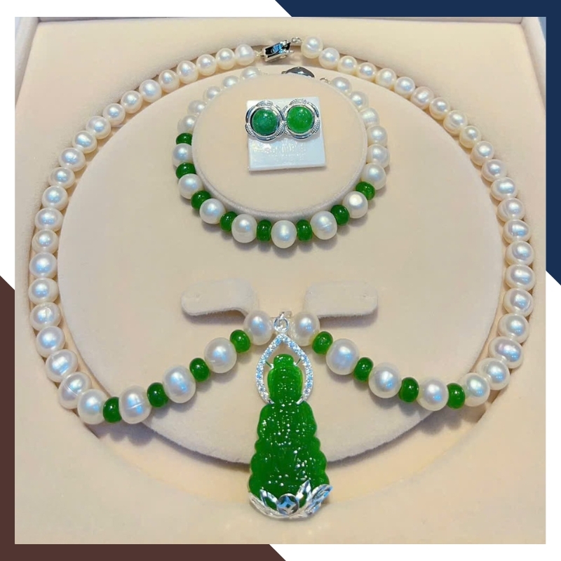 Trong thế giới trang sức, bộ trang sức ngọc trai cho mẹ mix Phật bằng đá phong thuỷ bọc bạc BTSNT188 được xem là một biểu tượng của bình an, sang trọng và viên mãn – vừa mang vẻ đẹp tự nhiên, vừa ẩn chứa năng lượng phong thuỷ tích cực.