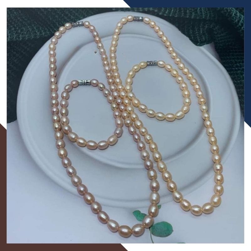 Kiểu dáng: Vòng ngọc trai hạt gạo màu hồng ( hoặc tím ) - Mẫu vòng ngọc trai phù hợp mặc áo dài cho nữ