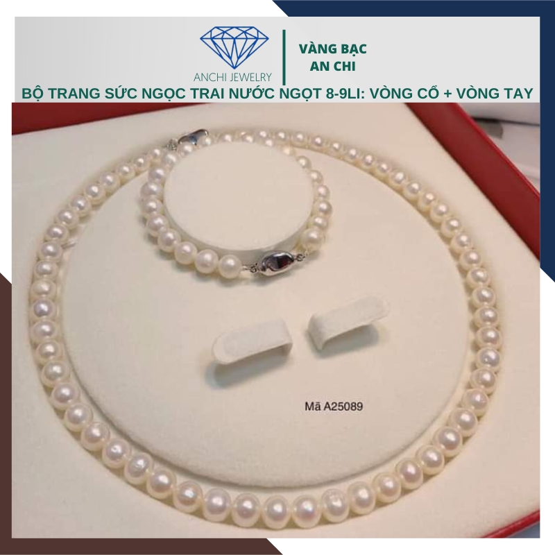 Bộ trang sức ngọc trai nước ngọt màu trắng cao cấp BTSNT05 gồm vòng cổ và vòng tay - được làm từ chuỗi ngọc trai thật 8-9mm màu trắng cao cấp hạt tròn, bề mặt bóng đẹp tự nhiên, hiếm vết sinh trưởng, đã trở thành một biểu tượng của sự quý phái và thanh lịch. Những lợi ích đem lại khi mua bộ trang sức ngọc trai nước ngọt BTSNT05: