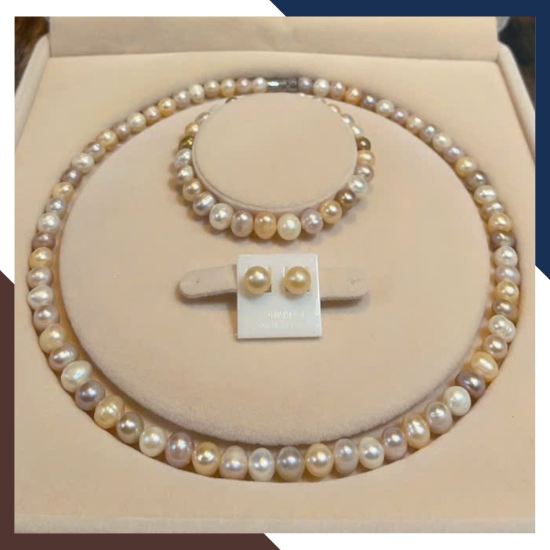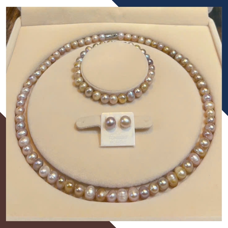 Bộ trang sức ngọc trai thật 7–8mm nhiều màu BTSNT206 là minh chứng sống động cho tinh thần ấy – nơi vẻ đẹp tự nhiên của ngọc trai hòa quyện cùng phong cách tối giản, tạo nên khí chất sang trọng và quý phái.