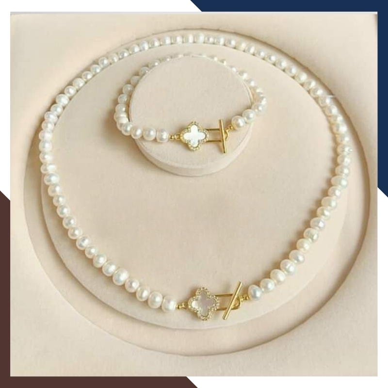 Bộ trang sức ngọc trai thật mix cỏ 4 lá mã K50T78, được gia công trực tiếp tại xưởng không qua khâu trung gian đảm bảo giá thành cạnh tranh