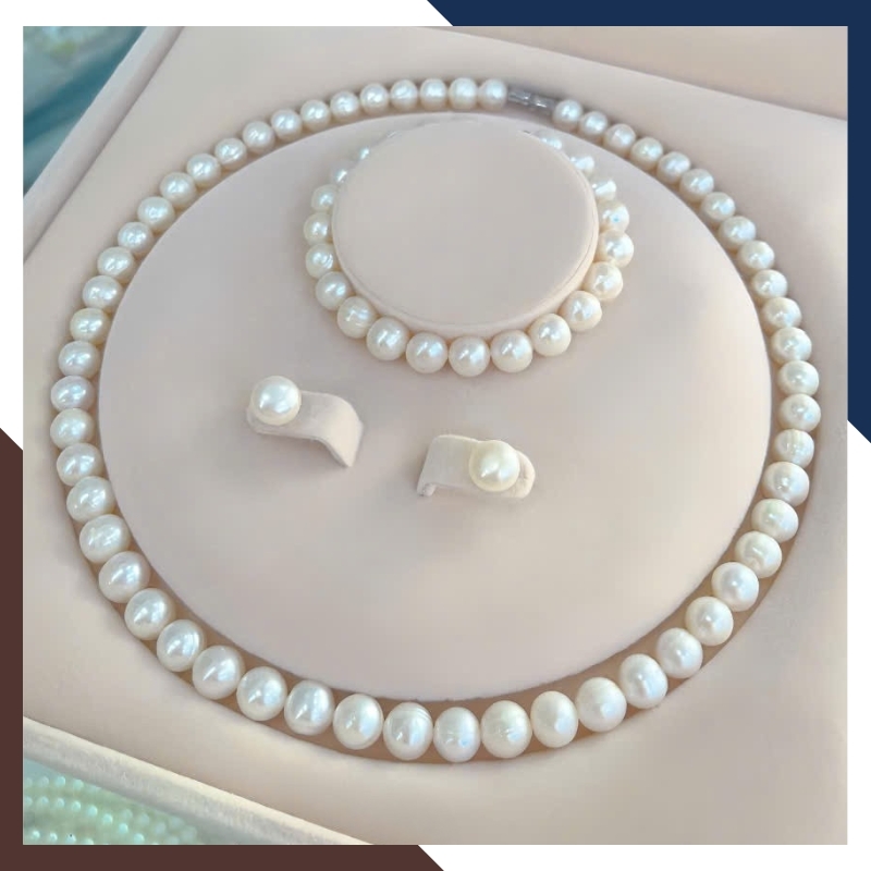 → Kích thước ngọc trai 8–9mm, cân đối và được chọn lọc kỹ để đảm bảo độ tròn, bóng mịn hoàn hảo. -
