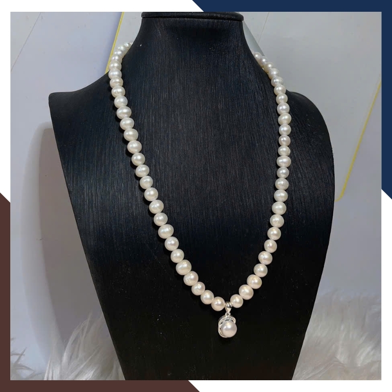 → Hạt ngọc trai thường khoảng 7–8mm, đem lại vẻ cân đối, tinh tế. -