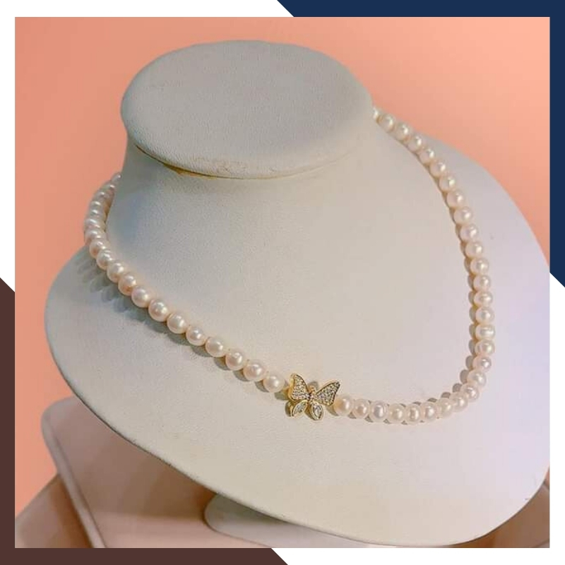 Bộ trang sức ngọc trai tự nhiên khóa hình con bướm, mẫu vòng ngọc trai mặc áo dài đẹp cho nữ mã 67B1192