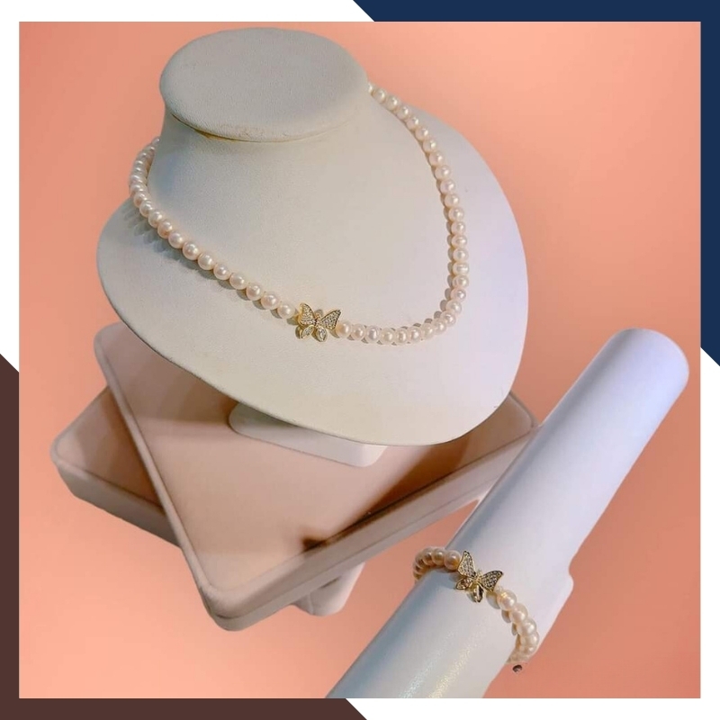 Bộ trang sức ngọc trai tự nhiên khóa hình con bướm, mẫu vòng ngọc trai mặc áo dài đẹp cho nữ mã 67B1192, được gia công trực tiếp tại xưởng không qua khâu trung gian đảm bảo giá thành cạnh tranh