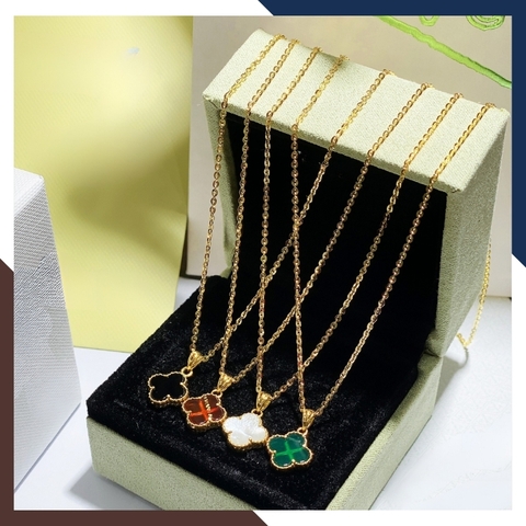 Kiểu dáng: Bộ trang sức cỏ 4 lá vàng tây 10k gồm dây chuyền, nhẫn và bông tai