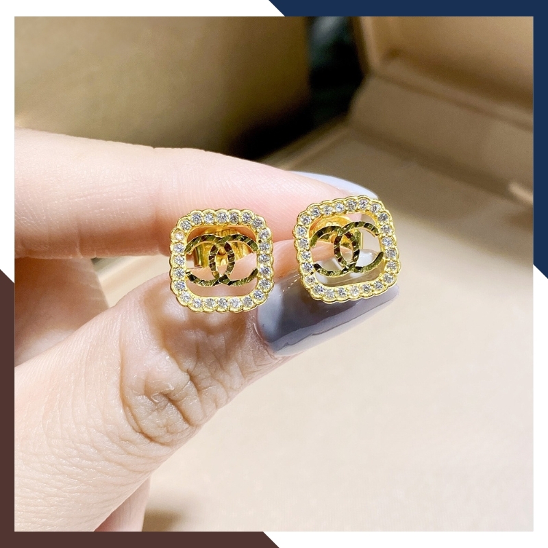Bông tai Chanel vàng tây 10k kiểu chốt bấm viền hình vuông đính đá cho nữ đẹp mã TL47