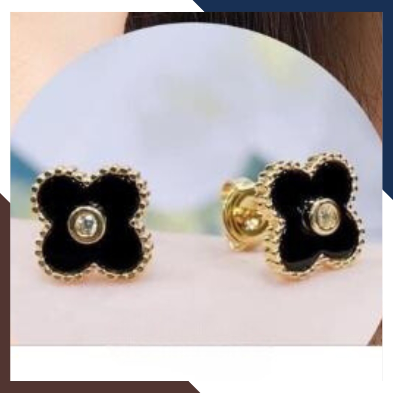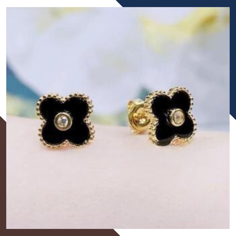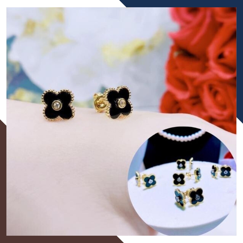 Bông tai cỏ 4 lá vàng tây 10k đen đỏ trắng xanh mã BTV07, được gia công trực tiếp tại xưởng không qua khâu trung gian đảm bảo giá thành cạnh tranh