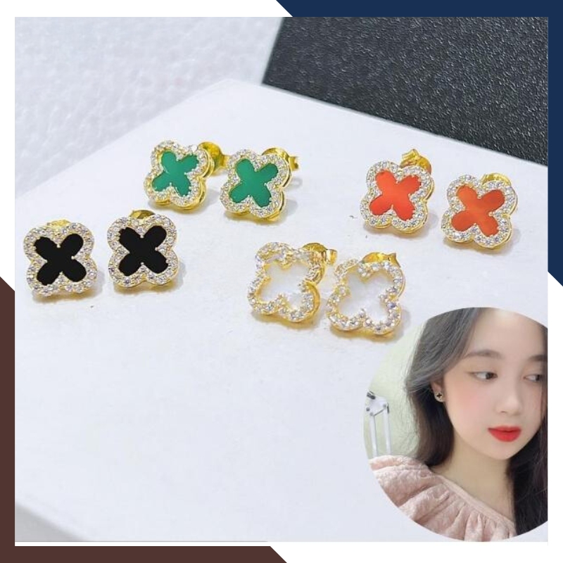 Bông tai cỏ 4 lá vàng tây 10k đen đỏ trắng xanh mã BTV07