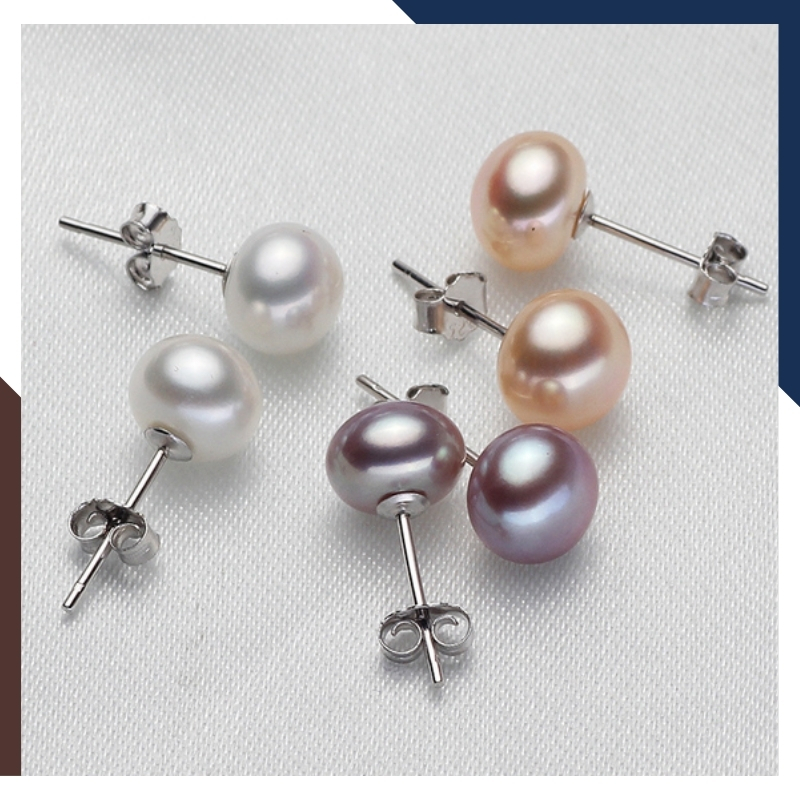 Bông tai ngọc trai bạc nụ 7-8mm cho nữ đẹp mã 78AC90, được gia công trực tiếp tại xưởng không qua khâu trung gian đảm bảo giá thành cạnh tranh
