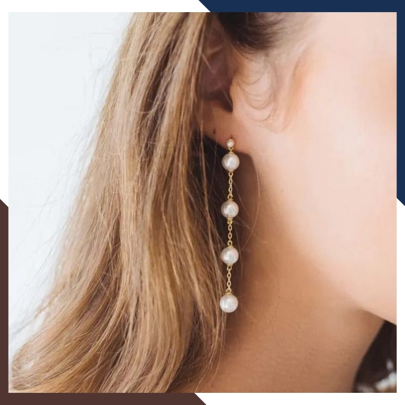 Kiểu dáng: Bông tai ngọc trai dáng dài với 4 viên ngọc trai