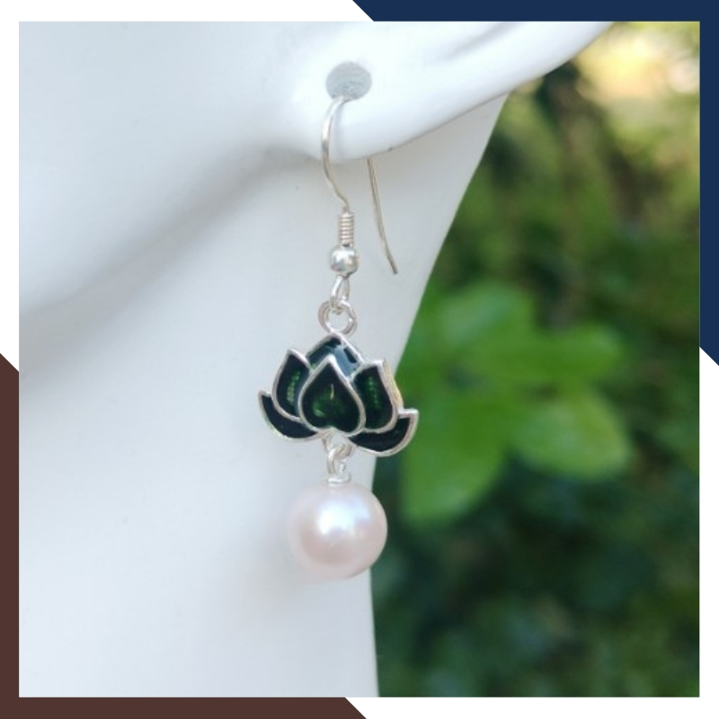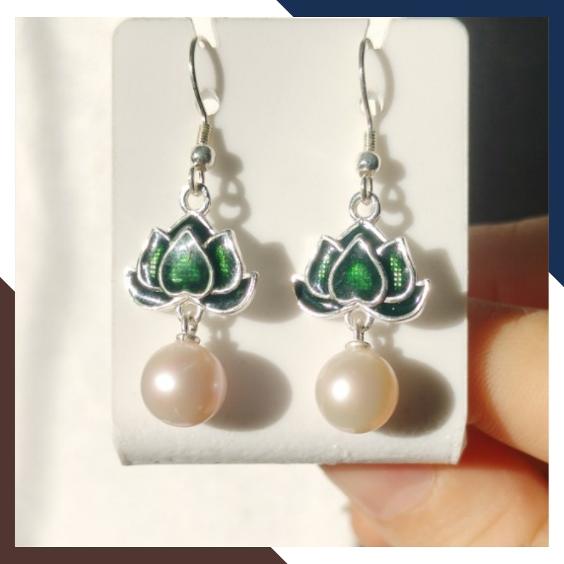 Kiểu dáng: Bông tai ngọc trai móc câu dáng dài hình bông hoa sen