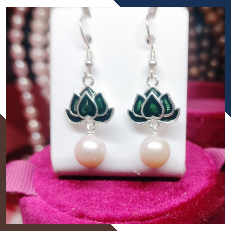 Bông tai ngọc trai móc câu dáng dài hình hoa sen đẹp cho nữ mã k90tt89, được gia công trực tiếp tại xưởng không qua khâu trung gian đảm bảo giá thành cạnh tranh