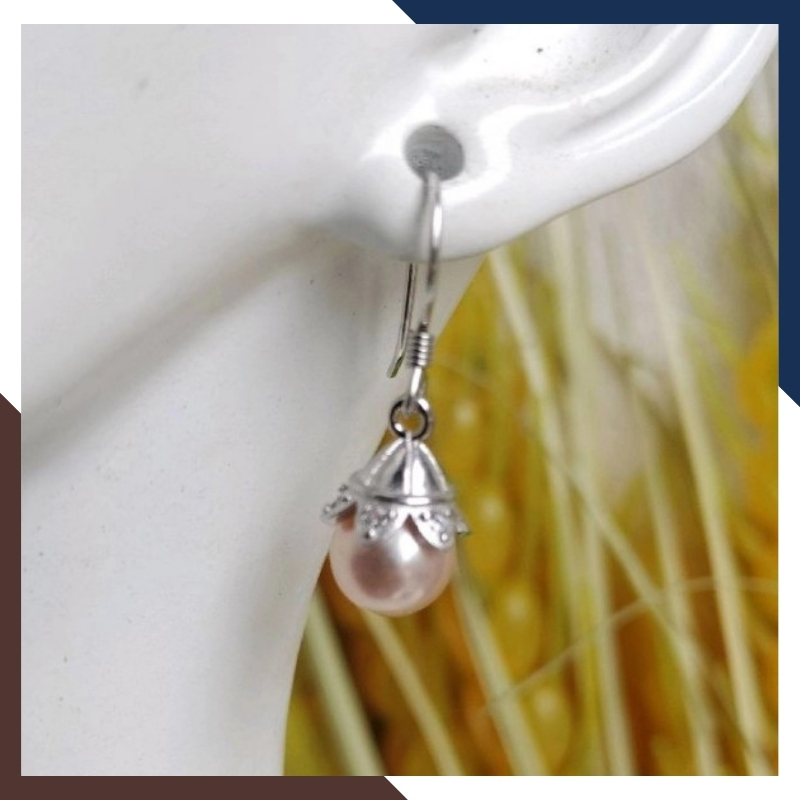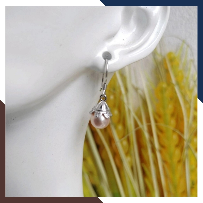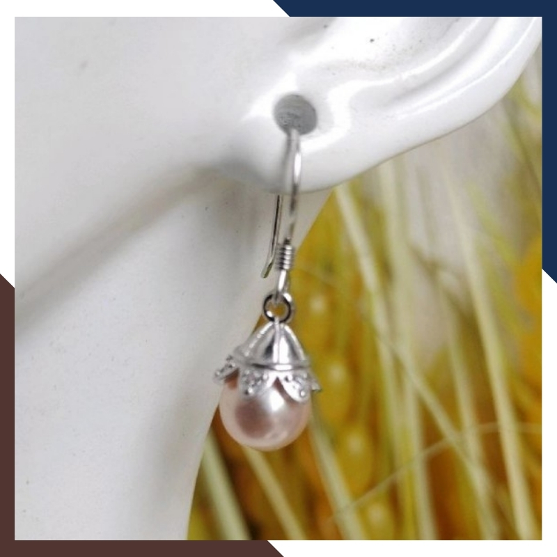 Kiểu dáng: Bông tai ngọc trai thật mẫu móc câu tòn ten