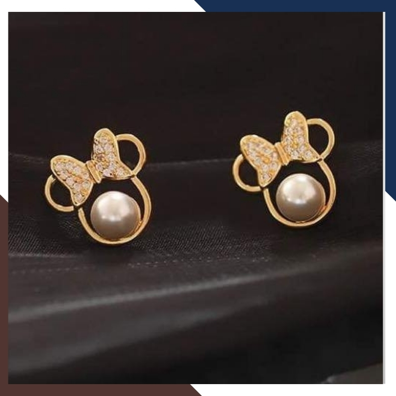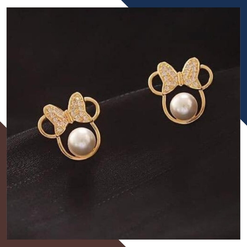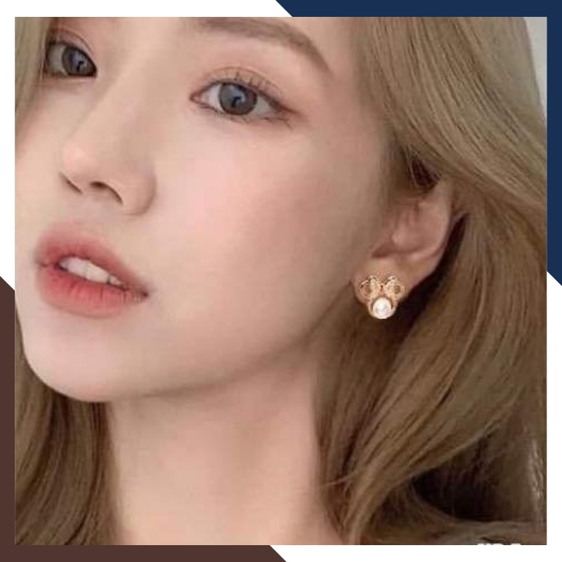 Kiểu dáng: Bông tai ngọc trai nụ bạc hình gấu đính nơ mạ vàng
