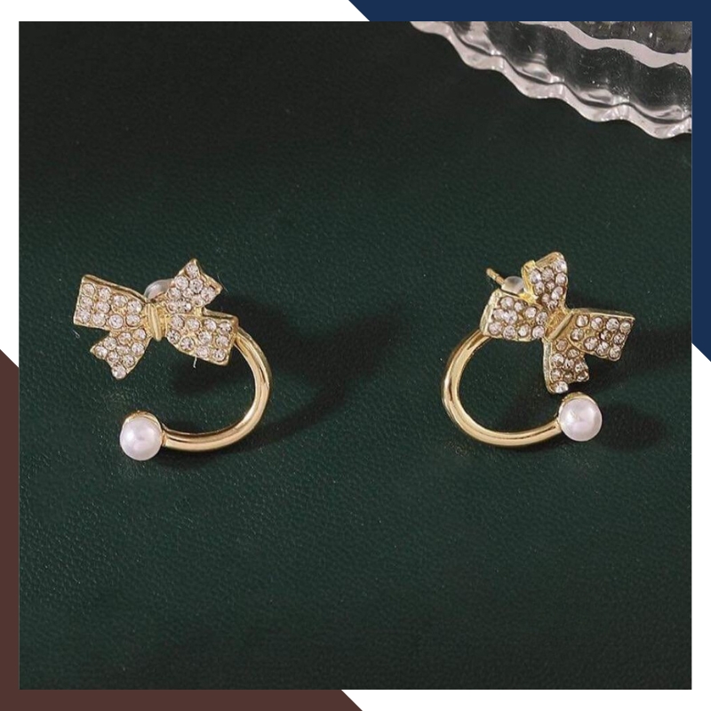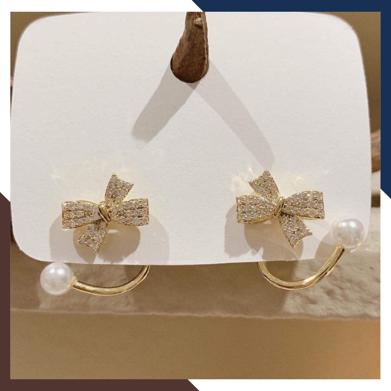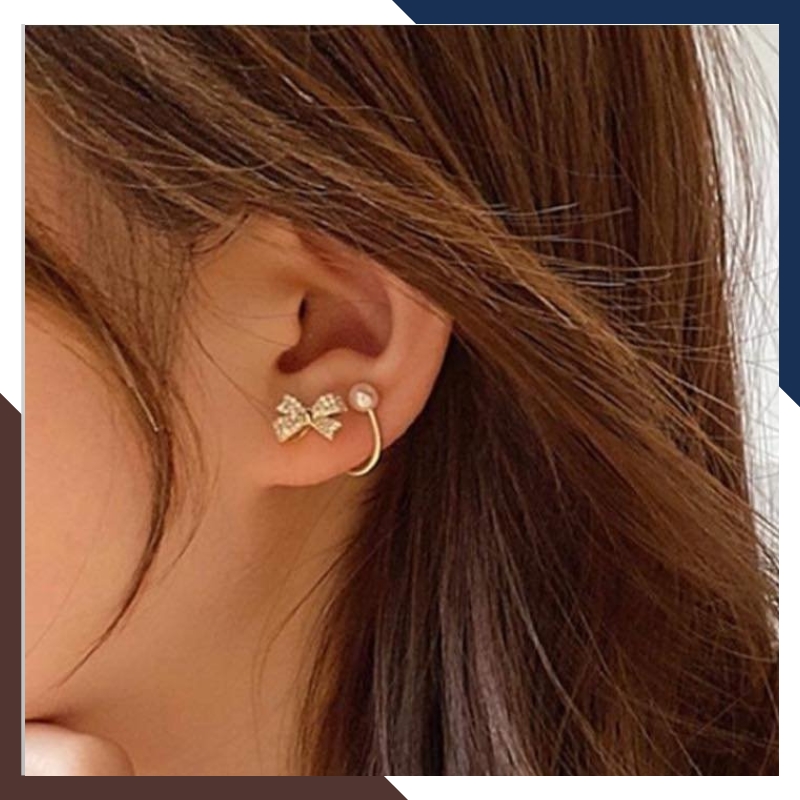 Kiểu dáng: Bông tai ngọc trai nhỏ khung bạc ôm vành tai hình nơ