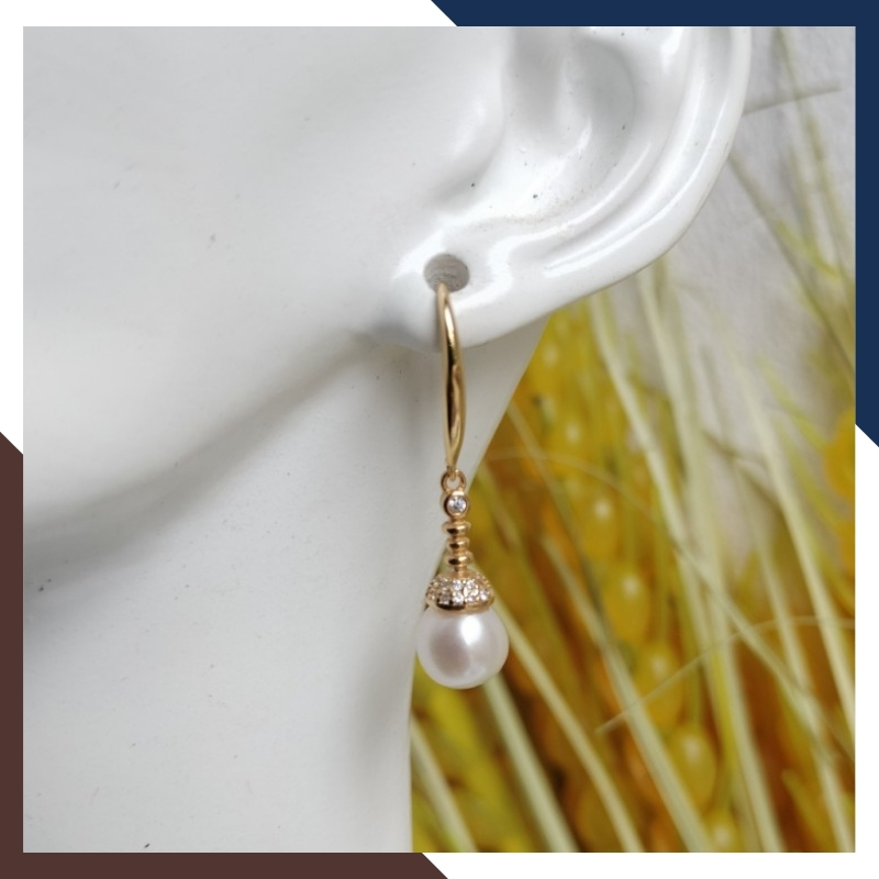 Kiểu dáng: Bông tai ngọc trai thật mẫu móc câu tòn ten
