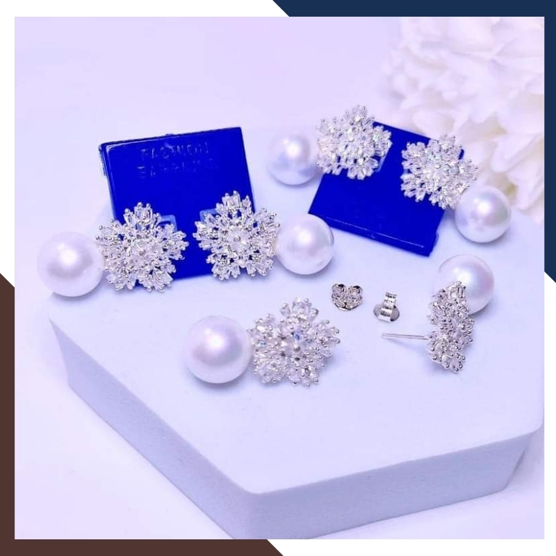 Kiểu dáng: Bông tai hình hoa tuyết đính ngọc trai kiểu tòn ten lủng lẳng