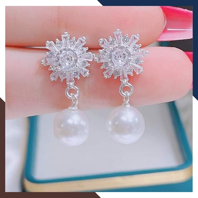 Kiểu dáng: Bông tai hình hoa đá đính ngọc trai kiểu tòn ten lủng lẳng