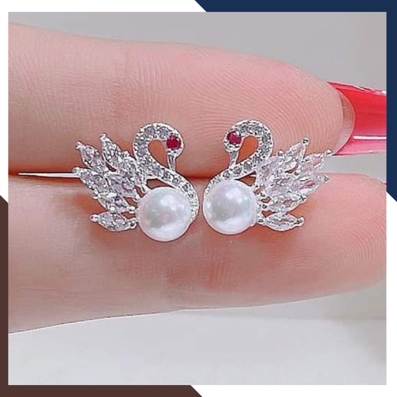 Bông tai nụ ngọc trai hình thiên nga bạc cho nữ đẹp mã K68TD89, được gia công trực tiếp tại xưởng không qua khâu trung gian đảm bảo giá thành cạnh tranh