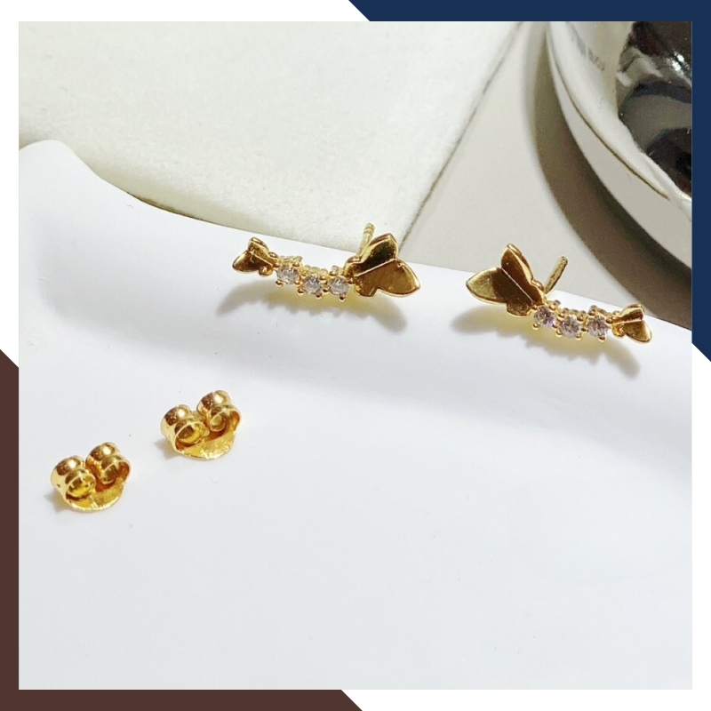 Bông tai vàng tây 10k dãy nụ đá hình bướm sát vành nhỏ xinh cho nữ đẹp mã TL34