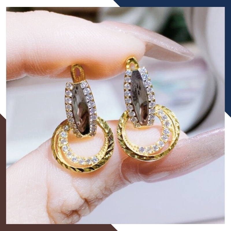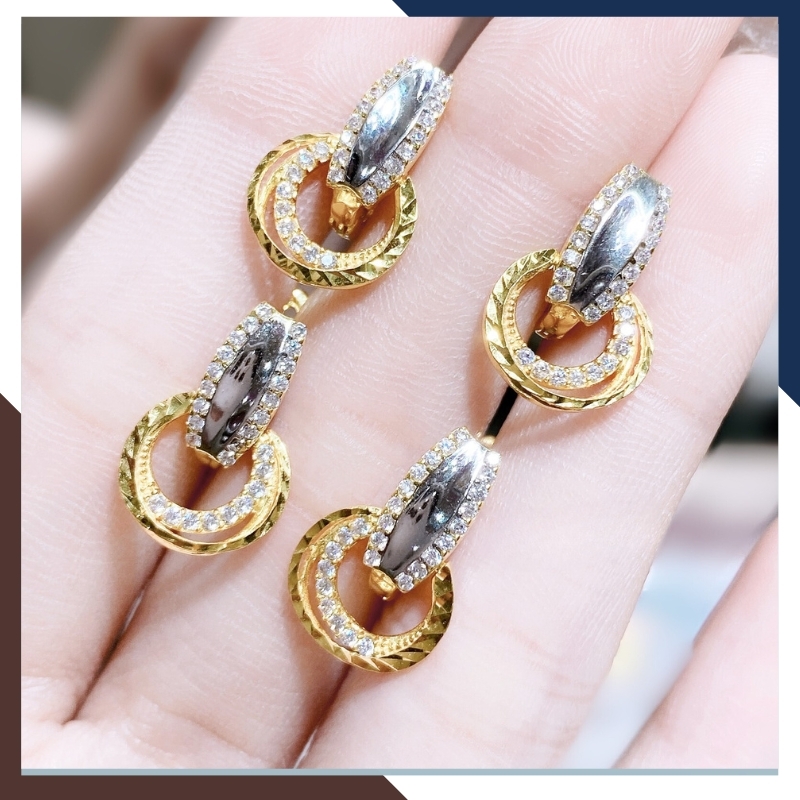 Bông tai nữ vàng tây 10k hình đôi mắt treo vòng tròn kiểu tòn ten trẻ trung mới đẹp mẫu chốt bấm bật mã TL63, với sự lấp lánh nhẹ nhàng của vàng 10k cùng với kiểu dáng tinh tế, duyên dáng và nữ tính, có thể dễ dàng phối hợp với nhiều mẫu trang phục khác nhau như trang phục trang phục hàng ngày, công sở hay trang phục dự tiệc... là lựa chọn hoàn hảo tạo ra một điểm nhấn quyến rũ và sang trọng làm tôn lên vẻ đẹp tự nhiên và quý phái giúp phụ nữ tự tin thể hiện vẻ đẹp của mình. Với mức giá dưới 3 triệu, mẫu bông tai này không chỉ là sự đầu tư thông minh cho vẻ đẹp cá nhân mà còn là còn là một món quà giá trị và có ý nghĩa mà bạn có thể lựa chọn để dành tặng cho những người thân yêu như một lời chúc, lời mong cầu bình an, sức khỏe đến những người mà bạn yêu quý.