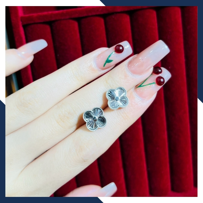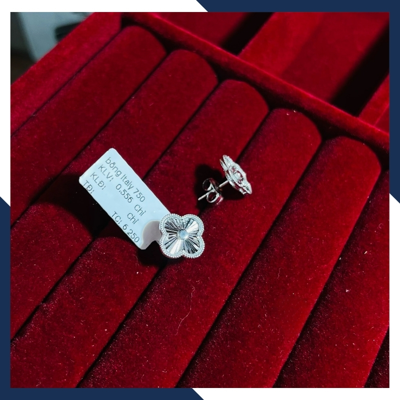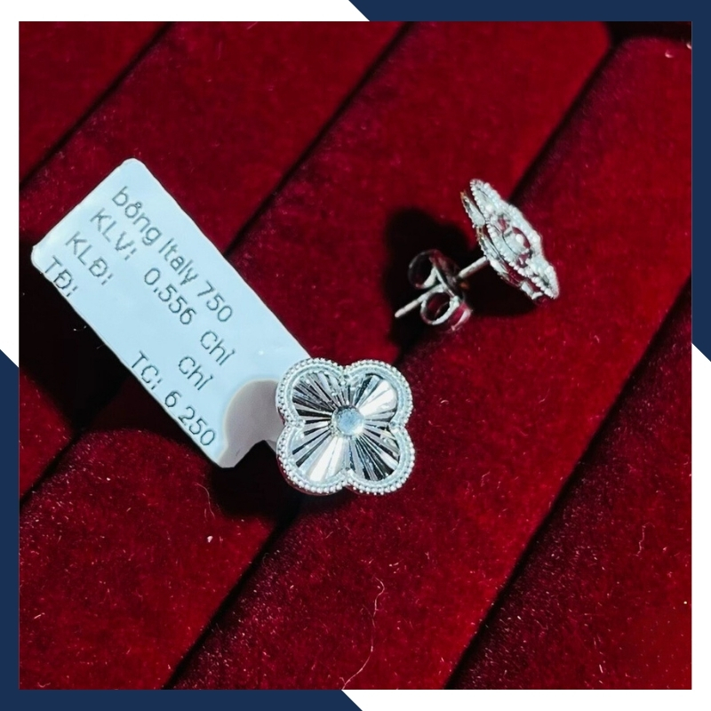 Bông tai cỏ 4 lá vàng trắng 18k, bông tai vàng ý 750 trẻ trung cho nữ mã 556B4420, được nhập khẩu trực tiếp không qua khâu trung gian đảm bảo giá thành cạnh tranh