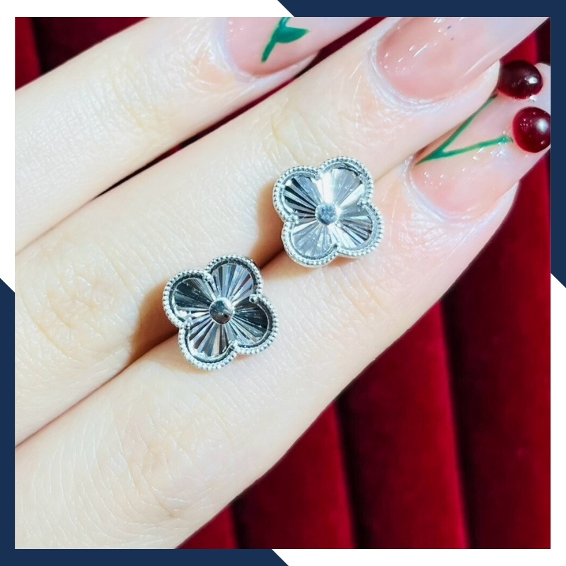 Bông tai cỏ 4 lá vàng trắng 18k, bông tai vàng ý 750 trẻ trung cho nữ mã 556B4420