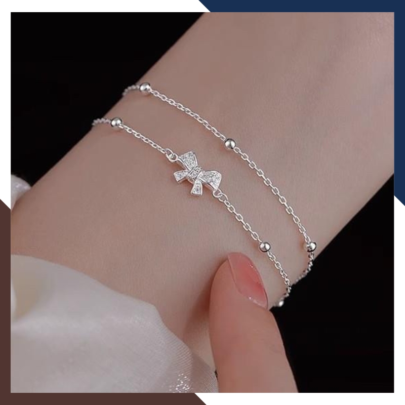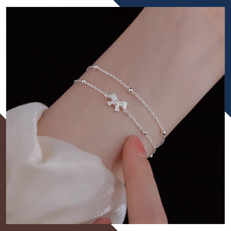Kiểu dáng: Combo Lắc tay lắc chân bạc nữ 2 vòng hình nơ mix bi