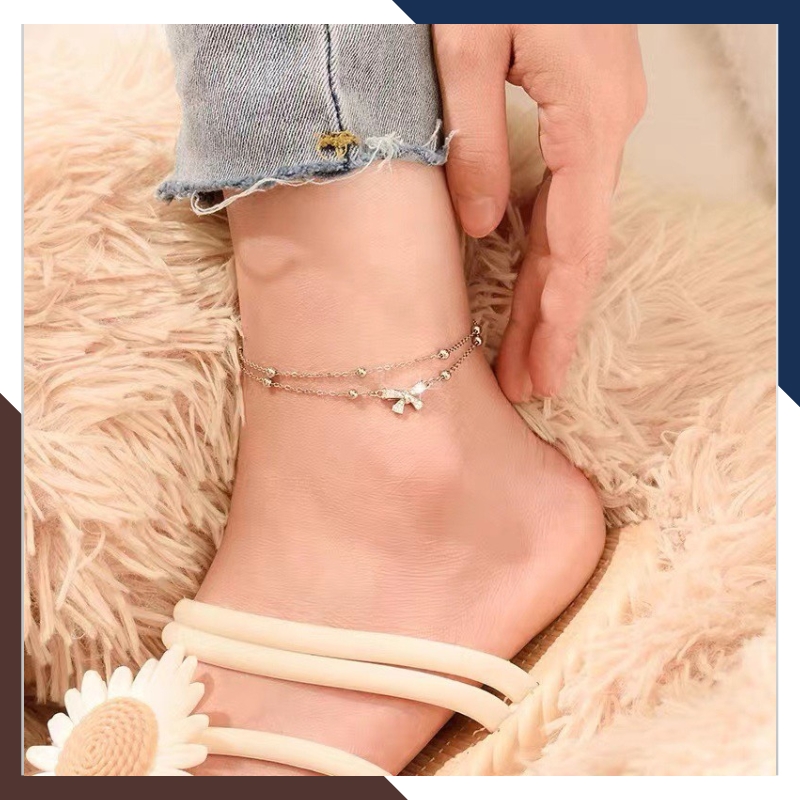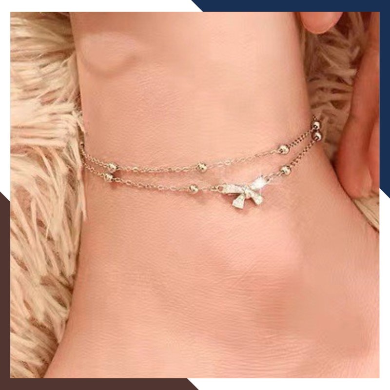 Combo Lắc tay lắc chân bạc nữ 2 vòng hình nơ mix bi đẹp mã T150C165