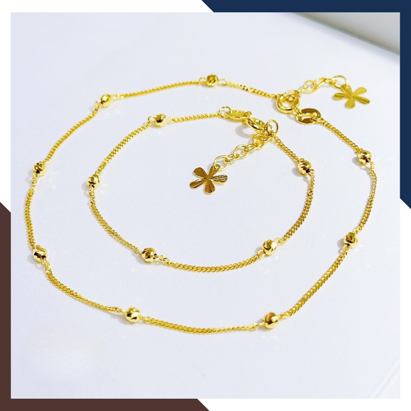Combo lắc tay và lắc chân bi vàng tây 10k cho nữ đẹp mẫu mắt xích mã T38C52