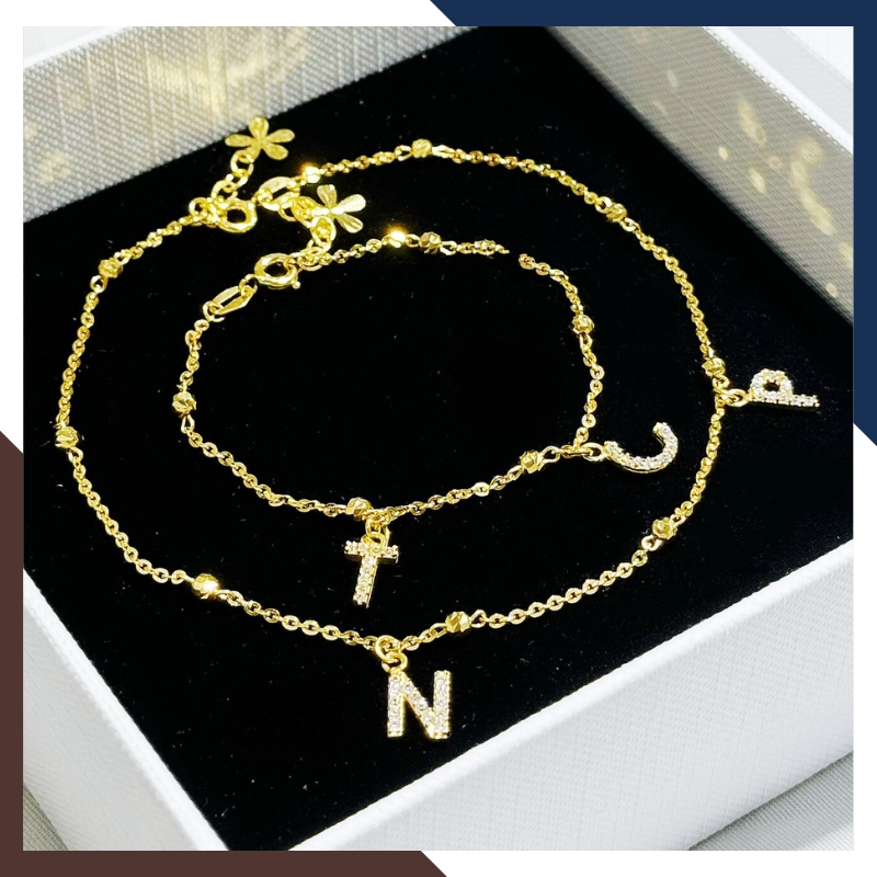 Combo Lắc tay và lắc chân chữ cái bằng vàng tây 10k cho nữ đẹp mã T54C70