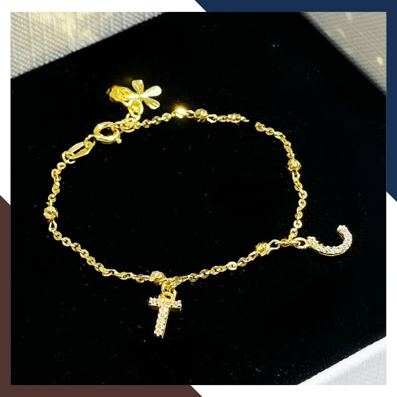 Combo Lắc tay và lắc chân chữ cái bằng vàng tây 10k cho nữ đẹp mã T54C70, được gia công trực tiếp tại xưởng không qua khâu trung gian đảm bảo giá thành cạnh tranh