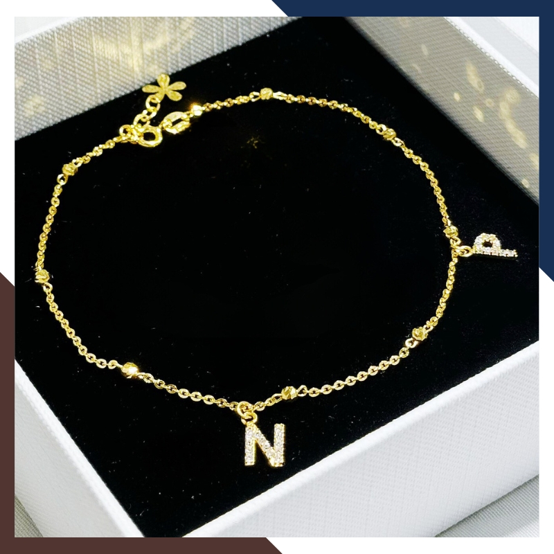 Kiểu dáng: Combo Lắc tay và lắc chân chữ cái phối bi bằng vàng tây 10k