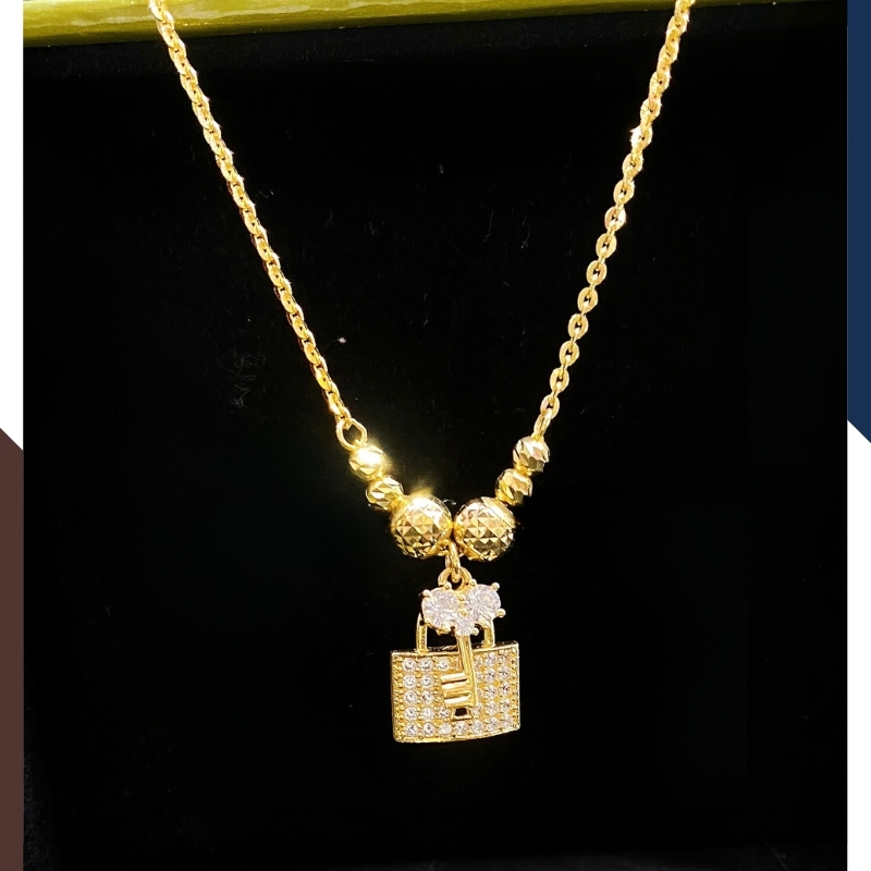 Dây chuyền vàng tây nữ 10k mặt ổ khóa mix bi mã TL107, được làm từ chất liệu vàng tây 10K với đặc tính không gây kích ứng cho da, không chỉ đảm bảo độ bền, độ sáng bóng theo thời gian mà còn giúp làm giảm giá thành sản phẩm. Với thiết kế kiểu dây chuyền chữ cong đính 8 viên bi phay cùng với mặt hình ổ khóa đính đá xinh xắn, dễ dàng kết hợp với nhiều loại trang phục khác nhau, từ trang phục hàng ngày, trang phục dạo phố cho đến trang phục công sở hay trang phục dự tiệc.