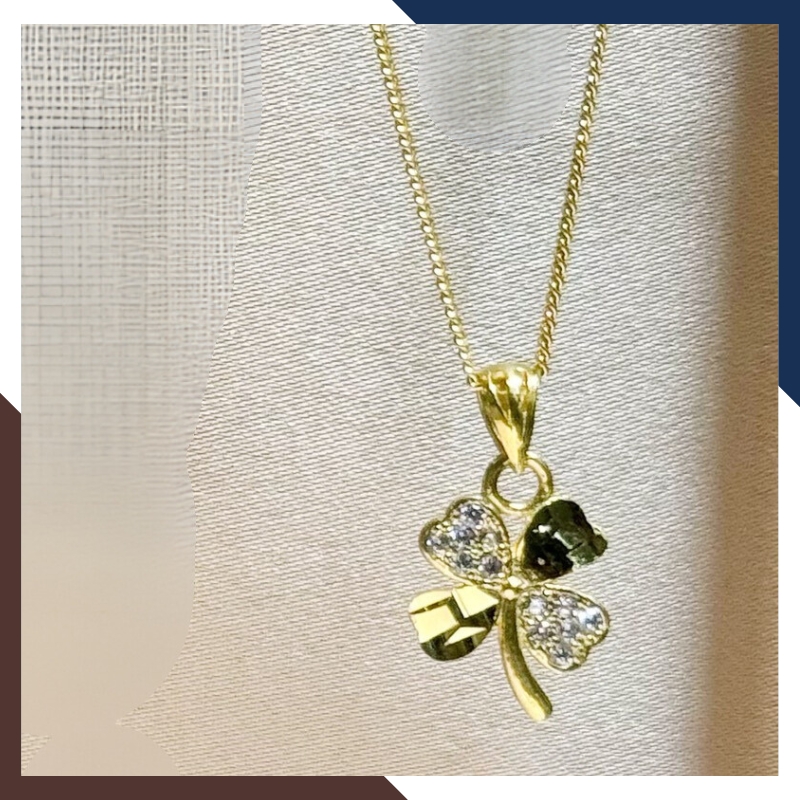 Kiểu dáng: Dây chuyền cỏ bốn lá vàng tây 10k đính đá