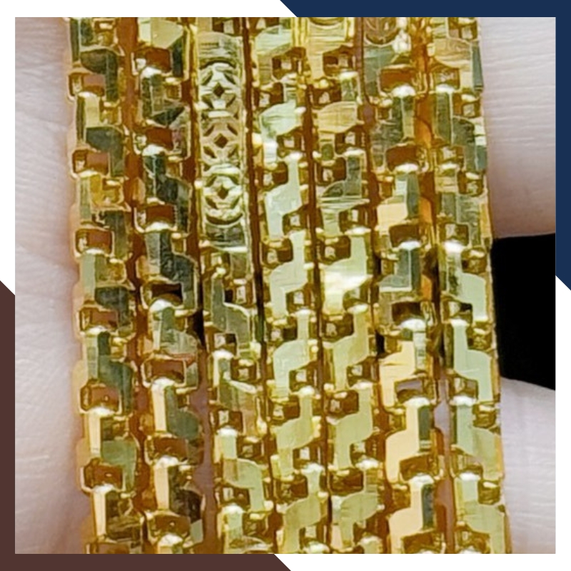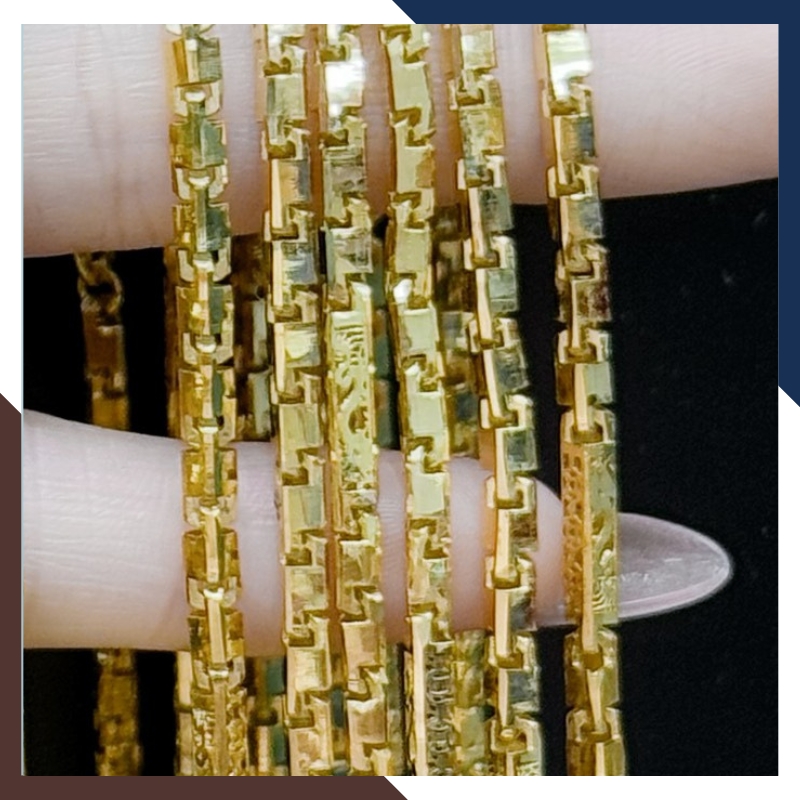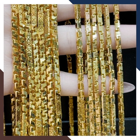 Kiểu dáng: Dây chuyền vàng khúc chữ cong khúc ống trụ họa tiết kim tiền ( mẫu dây trơn không mặt )
