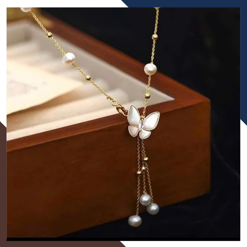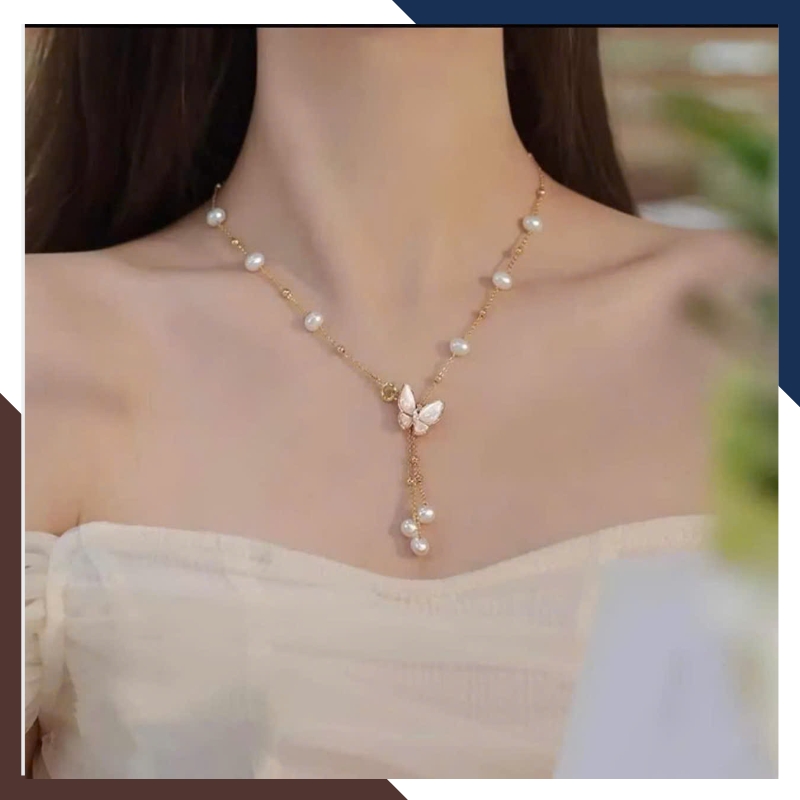 Dây chuyền ngọc trai bướm bạc mạ vàng cho nữ đẹp mã 78AC290