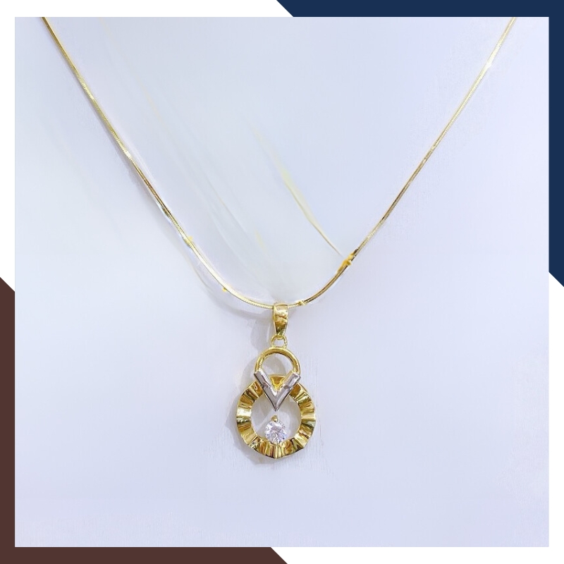 Dây chuyền vàng tây nữ 10k mặt tròn phối chữ V đẹp TL5430