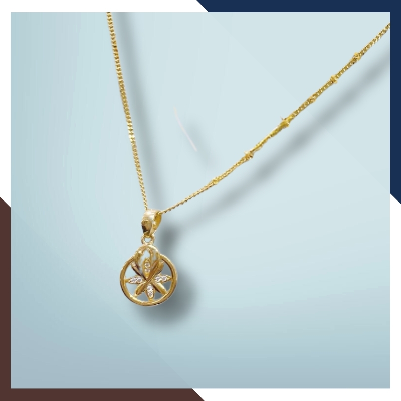 Dây chuyền vàng nữ mặt tròn lồng hoa 8 cánh mã DCVN21, sử dụng nguyên liệu là vàng tây 10k đủ tuổi, đủ trọng lượng, kích thước - có giấy kiểm định tuổi vàng bằng máy đo quang phổ, kèm giấy đảm bảo và cam kết thu mua lại vàng cũ