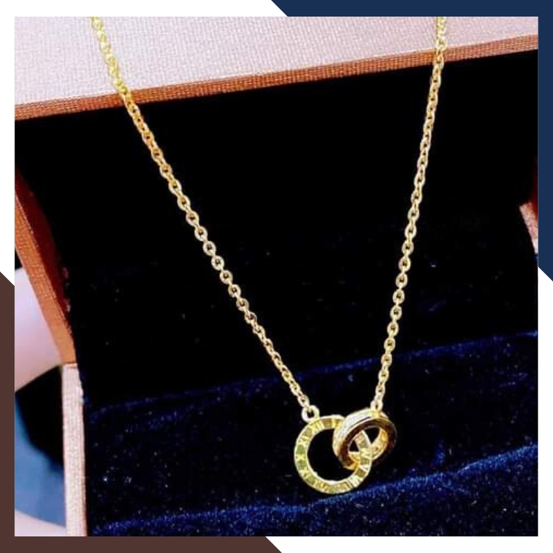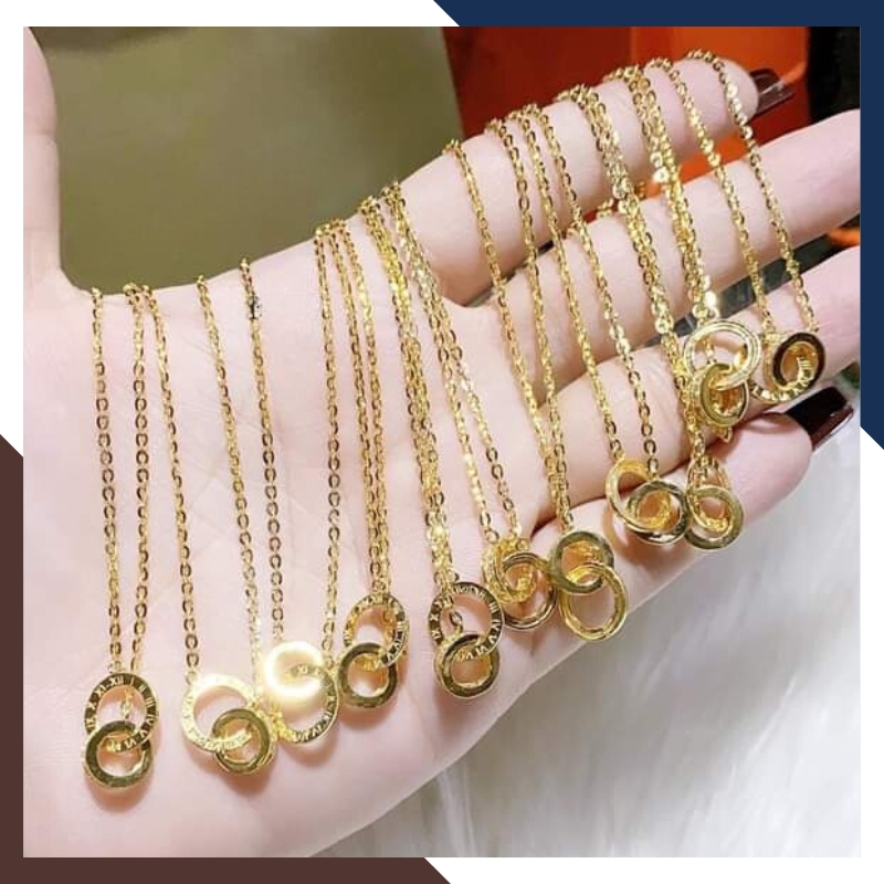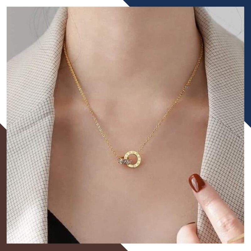 Kiểu dáng: Dây chuyền vàng nữ mặt nhẫn đôi lồng nhau khắc số La Mã