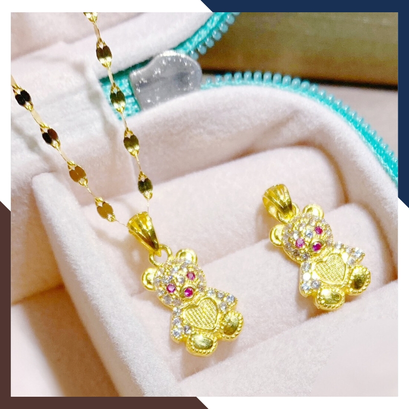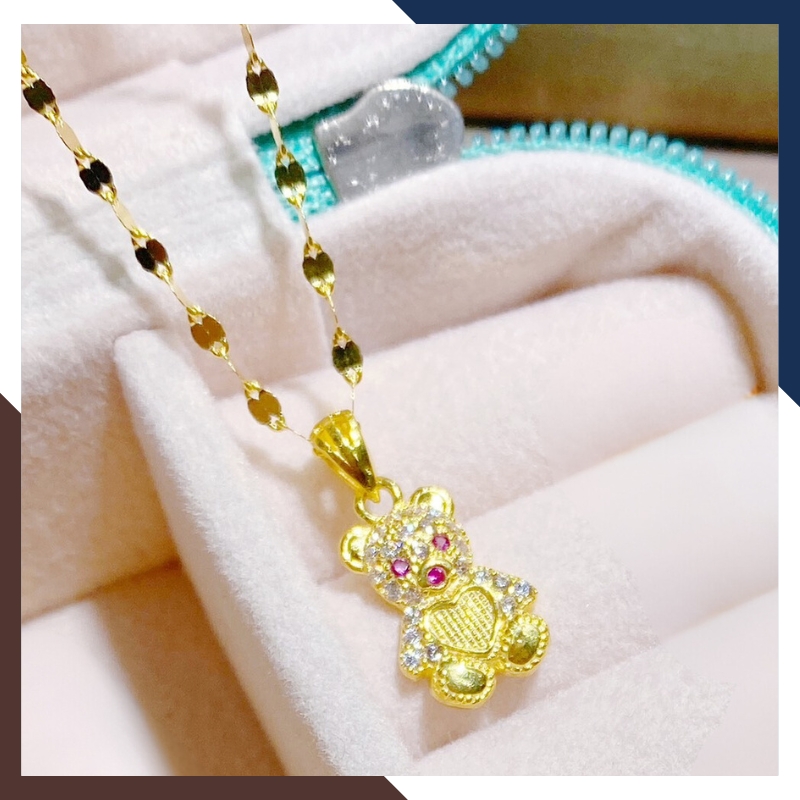 Đối tượng sử dụng: Dây chuyền vàng tây nữ 10k mẫu dây lá me có mặt hình con gấu đính đá
