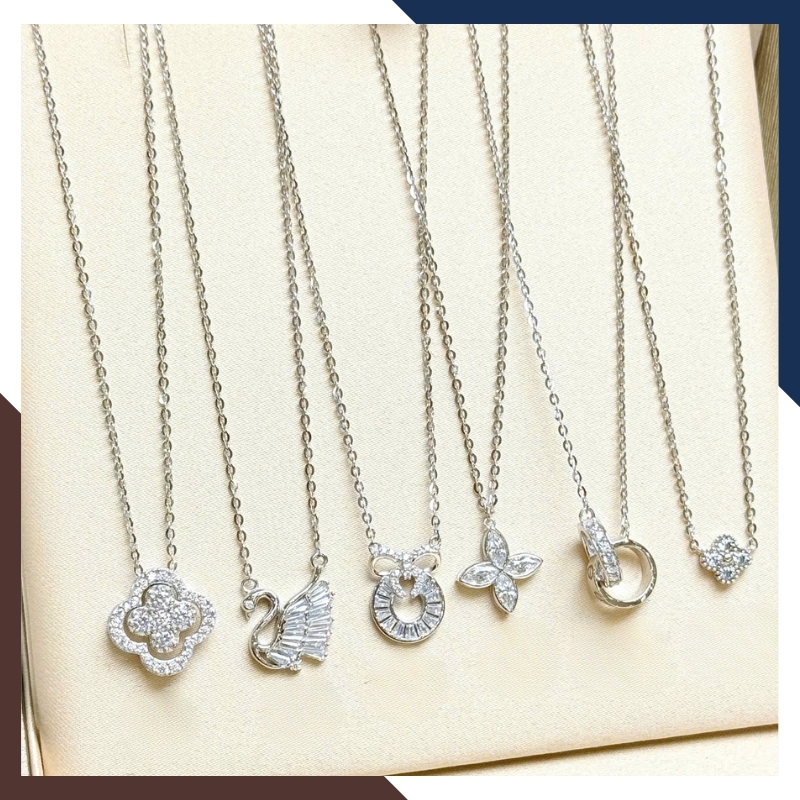 Kiểu dáng: Dây chuyền vàng trắng 10k trẻ trung & nữ tính như dây chuyền nhẫn đôi, dây chuyền thiên nga, dây chuyền mặt tròn