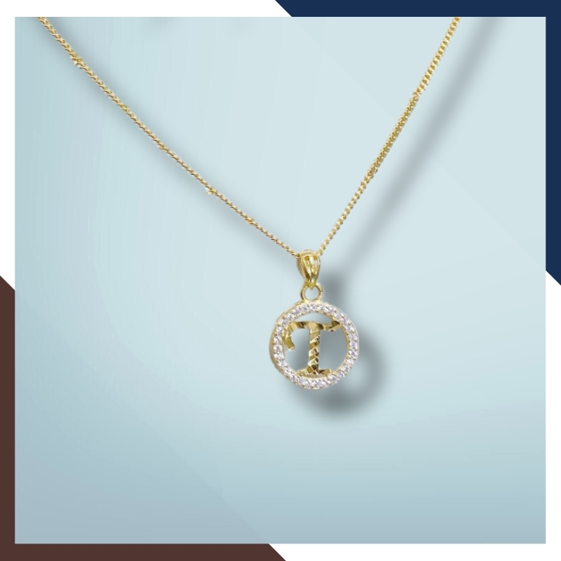 Kiểu dáng: Dây chuyền xích vàng nữ có mặt chữ T đính đá xinh xắn