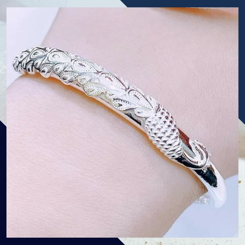 Kiểu dáng: Kiềng tay bạc ta nguyên chất khắc họa tiết đuôi công tinh xảo