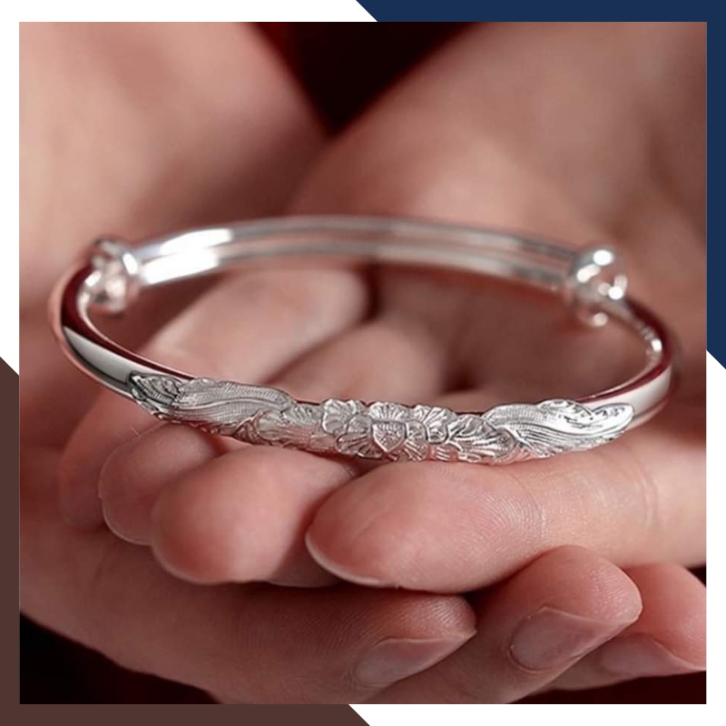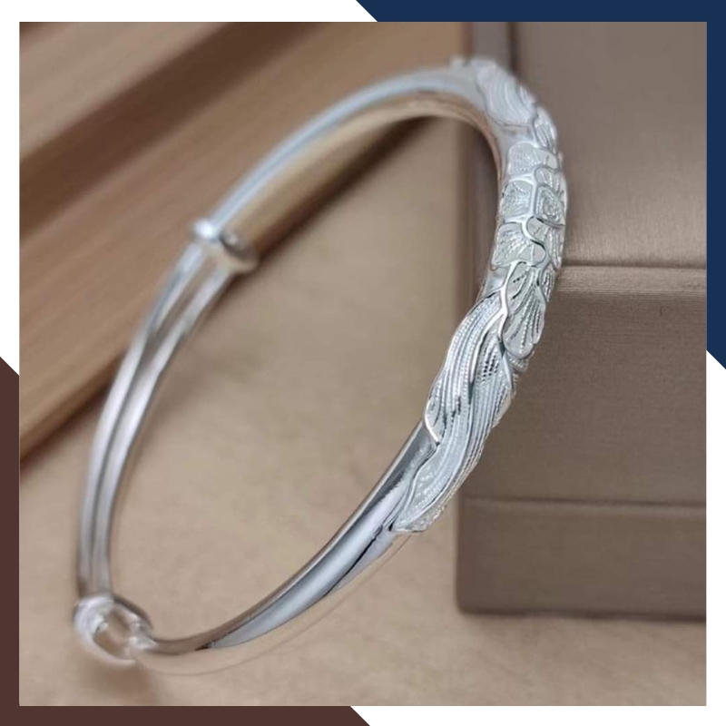 Kiểu dáng: Kiềng tay bạc ta nguyên chất khắc họa tiết hoa sen tinh xảo